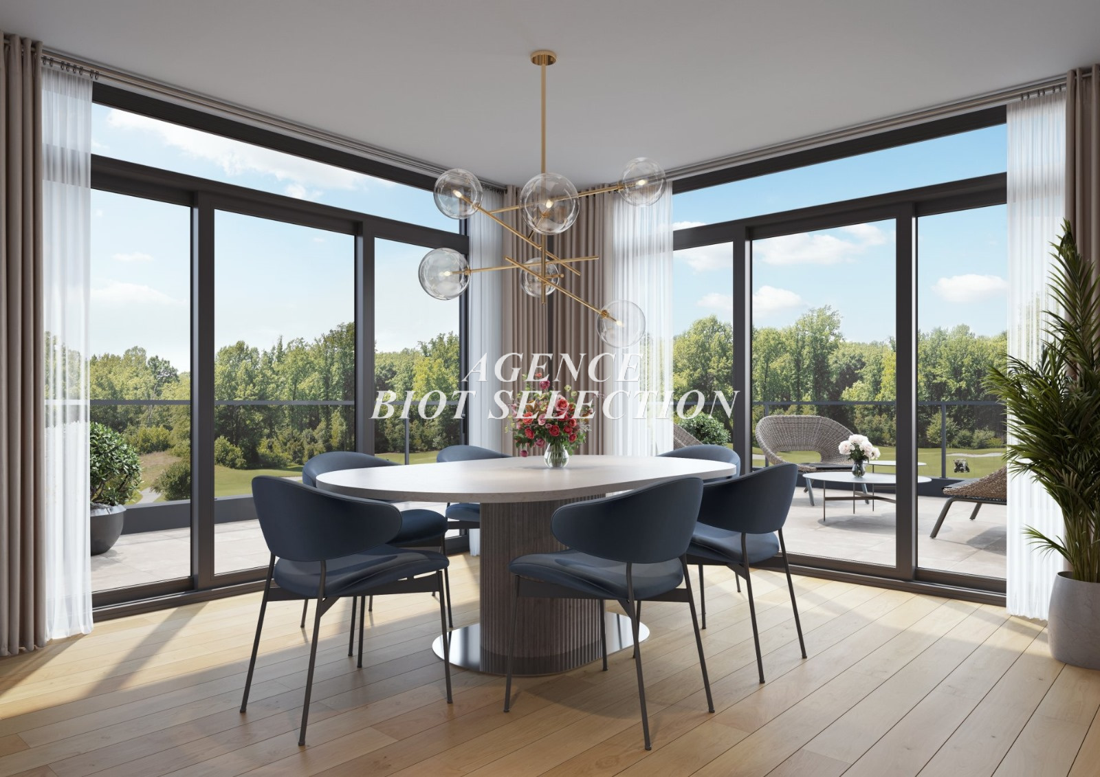 Entièrement closes et entourées de jardins arborés, ces résidences golfiques participent au caractère végétal et résidentiel du quartier. Leur architecture contemporaine, avec seulement deux étage, offre de très belles expositions aux appartements. Tous disposent d'un espaces extérieur, terrasse ou jardin privatif, et d'une vue magnifique sur le Golfe et son environnement.